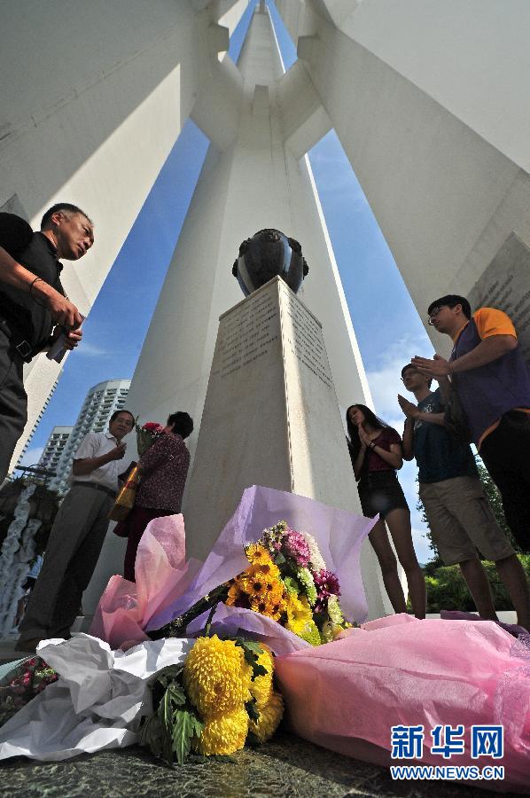 2月15日,市民出席在新加坡美芝路战争纪念公园举行的祭礼。新加坡中华总商会当日在新加坡市中心美芝路的“日本占领时期死难人民纪念碑”前举行祭礼,悼念二战期间新加坡被日本占领时期被杀害的人民。新华社发(邓智炜摄)
