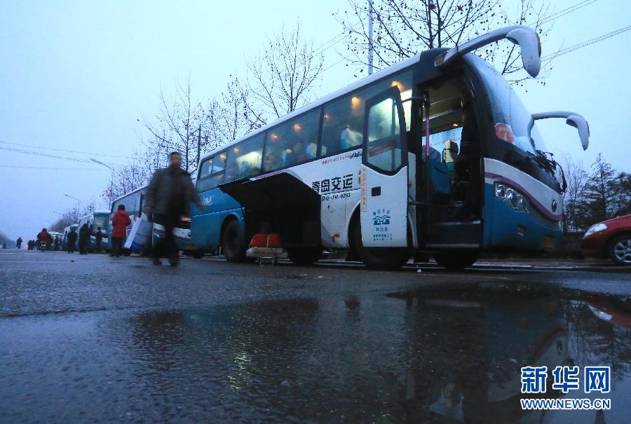 2月16日,山东即墨市即发集团的外来务工人员在搬运行李,准备乘包车返乡。当日,山东大型民营纺织服装企业即墨市即发集团的1000余名外来务工人员乘坐企业的免费包车分赴省内各地回家过年。据悉,元旦过后,该企业专门成立了春运小组,包租大巴、自制车票,送员工回家过年。这已是自2006年起,即发集团第10年包车送外来务工人员返乡过年。新华社发(梁孝鹏 摄)