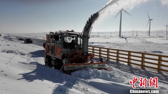 除雪机械在清楚积雪,疏通道路。 李小华 摄