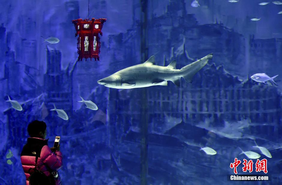 2月16日,北京海洋馆举办了2015年度海洋民俗首演活动。现场,北京海洋馆精心策划编排的全国首个海洋民俗表演首次向公众进行展示,醒狮祥龙同台斗秀。通过“缸内舞龙、缸外舞狮,游龙戏珠、狮随珠走”的形式,为游客营造了时空穿越般的奇幻享受。 中新社发 陆欣 摄
