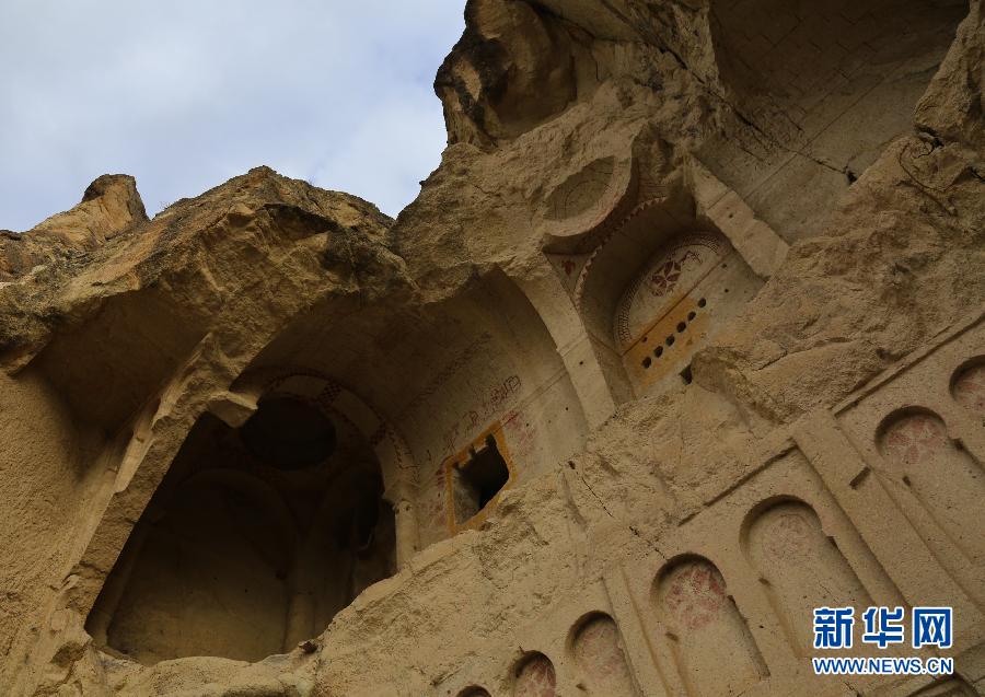 这是2月14日在土耳其内夫谢希尔省卡帕多基亚拍摄的拜占庭时期的基督教石窟教堂遗迹。卡帕多基亚位于土耳其中部安纳托利亚高原,曾被美国《国家地理》杂志评为全球最美的十个地方之一,以锥状火山岩“神仙烟囱”、可容纳万人的“地下城”和热气球旅游闻名。当地格雷梅国家公园和卡帕多基亚石窟群1985年被联合国教科文组织列入《世界遗产名录》。来自世界各地的许多游客都选择乘热气球升空鸟瞰,在晨曦和日暮中感受大自然的瑰丽神奇与人类文明的神工鬼斧。新华社记者邹乐摄