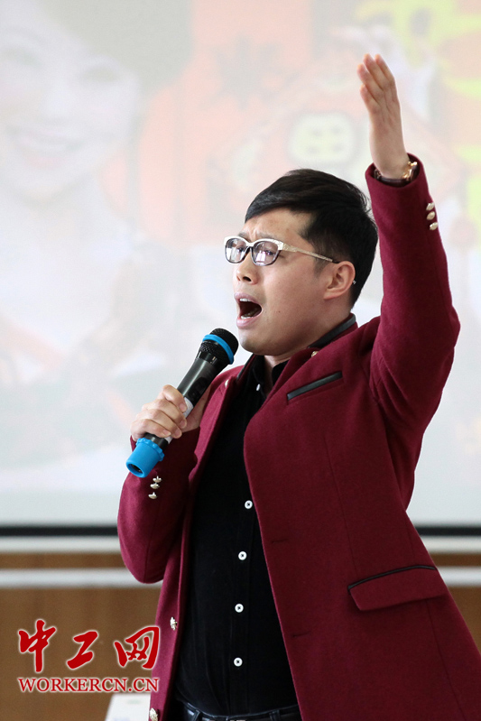 2月16日,受全国敬老委员会委托,由北京市玉海辉物业管理有限公司组织,敬爱艺术团演员对春节期间坚守岗位的总参某部广大官兵送去节日慰问,向他们致以新春的祝福。青年歌唱家侯觉、魔术师杨丹等纷纷登台演出,军民共同联欢,现场气氛十分活跃。 中工网记者 李雪峰 摄