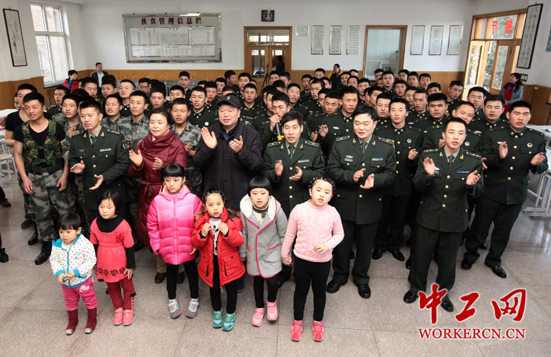2月16日,受全国敬老委员会委托,由北京市玉海辉物业管理有限公司组织,敬爱艺术团演员对春节期间坚守岗位的总参某部广大官兵送去节日慰问,向他们致以新春的祝福。青年歌唱家侯觉、魔术师杨丹等纷纷登台演出,军民共同联欢,现场气氛十分活跃。 中工网记者 李雪峰 摄