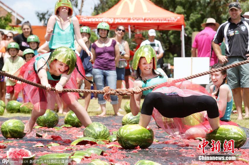 澳大利亚搞笑滑西瓜比赛 人仰马翻令人捧腹
