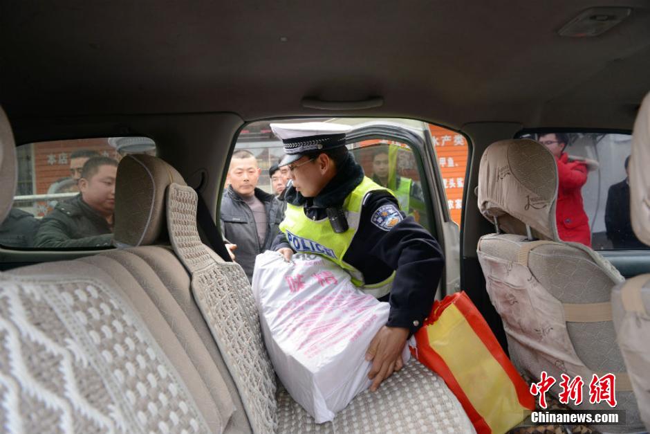 2月16日上午,江苏一夏姓老板携带500万现金,回盐城市建湖县老家给工人发工资,不料汽车在无锡境内高速发生事故,随后夏先生向警方求助。无锡民警将夏先生护送至泰州,再由泰州民警接力护送至盐城,最后盐城警方接到夏先生,于下午5点前将他安全送至建湖县九龙口镇,守候在此的四五十名工人顺利领取了夏先生发放的工资。清点现金。严公轩 摄