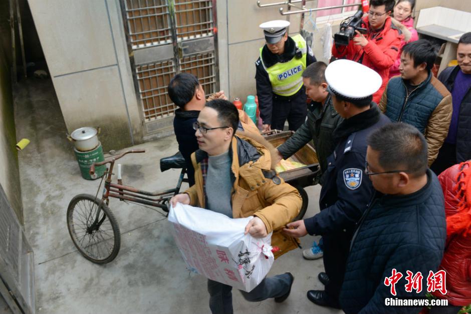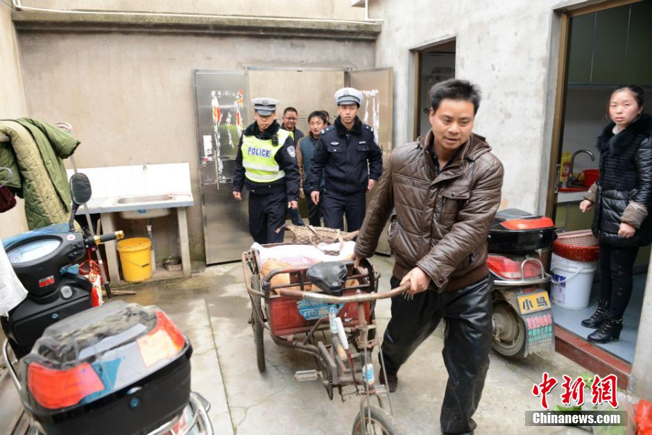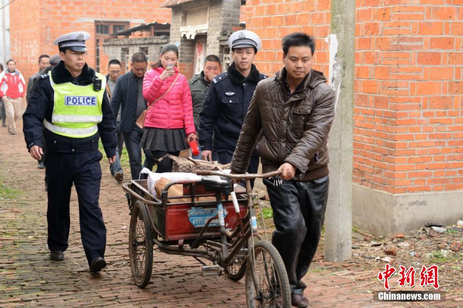 民警护送装运钱款的三轮车回夏老板的家。严公轩 摄
