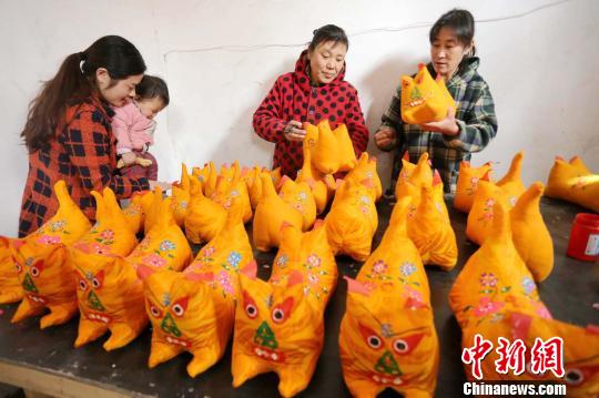 2月16日,农历腊月二十八,庞庄村村民正在给传统布老虎着彩绘。杨正华 摄
