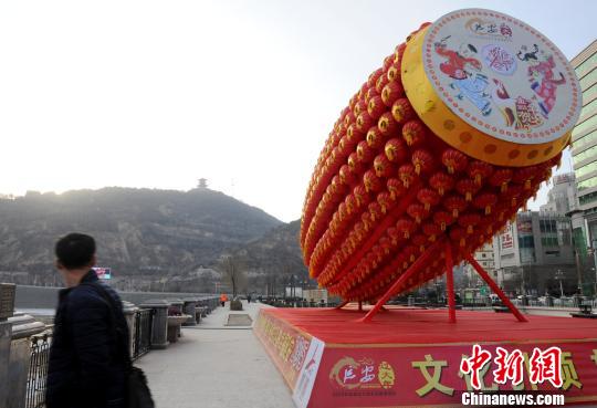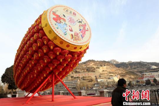 2月17日,一对巨型腰鼓矗立在延安街头,带来了浓浓的年味。吸引了过往行人的眼球。
