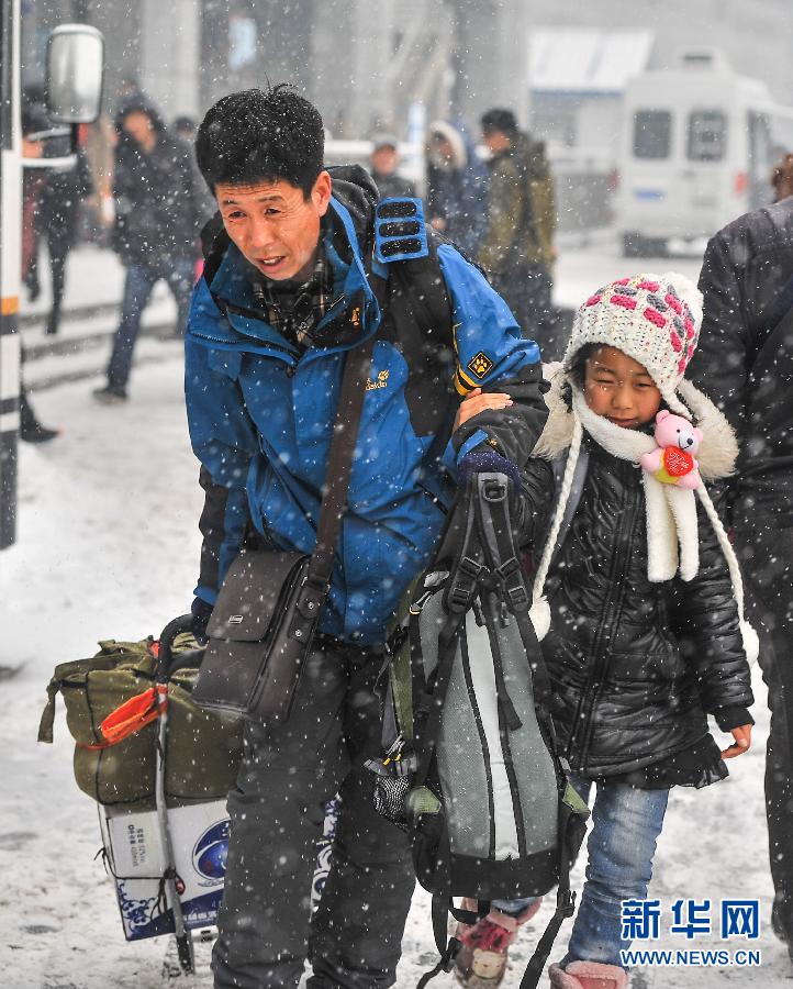 当日是农历腊月二十八,正值春运客流高峰,我国东北地区迎来一场大范围降雪天气,给春运中出行、返乡的旅客带来一定的不便,但寒风、大雪都无法阻挡人们归家的脚步。新华社记者 许畅摄