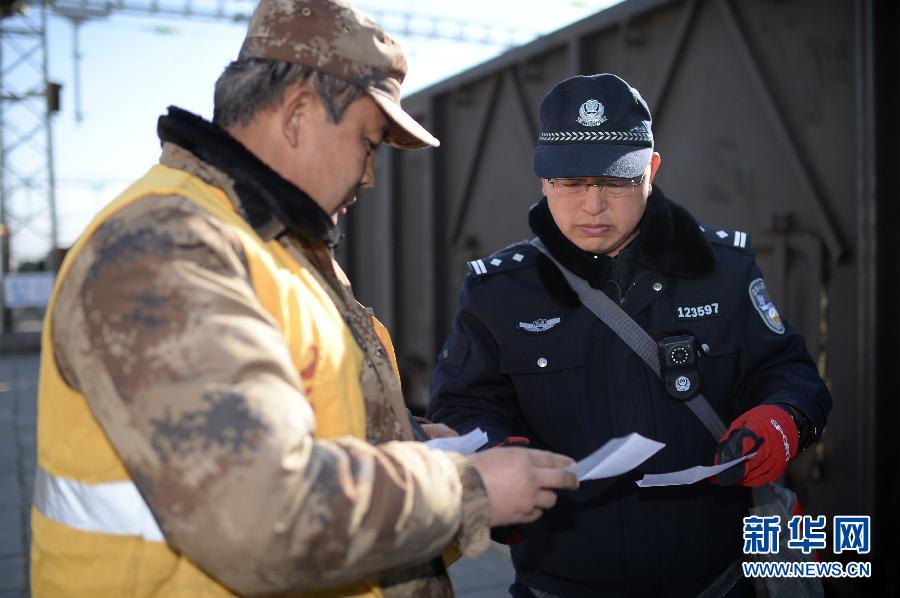 2月12日,葛志军在宁夏中卫市沙坡头区迎水桥镇对包兰线滞留车辆进行例行检查。今年47岁的葛志军是兰州铁路公安局银川铁路公安处中卫市沙坡头警务区的一名普通民警。20年的从警生涯里,葛志军在2个基层派出所和7个基层警务区工作过。目前葛志军值守的沙坡头警务区是包兰铁路线沙漠铁路路段,站点只有他一个民警,每天巡线近40公里的沙漠路段,还要巡查沿线的防护林防火工作,春运期间更是加大巡查力度。20年来,他没有与家人度过一个团圆年。新华社记者 王鹏 摄