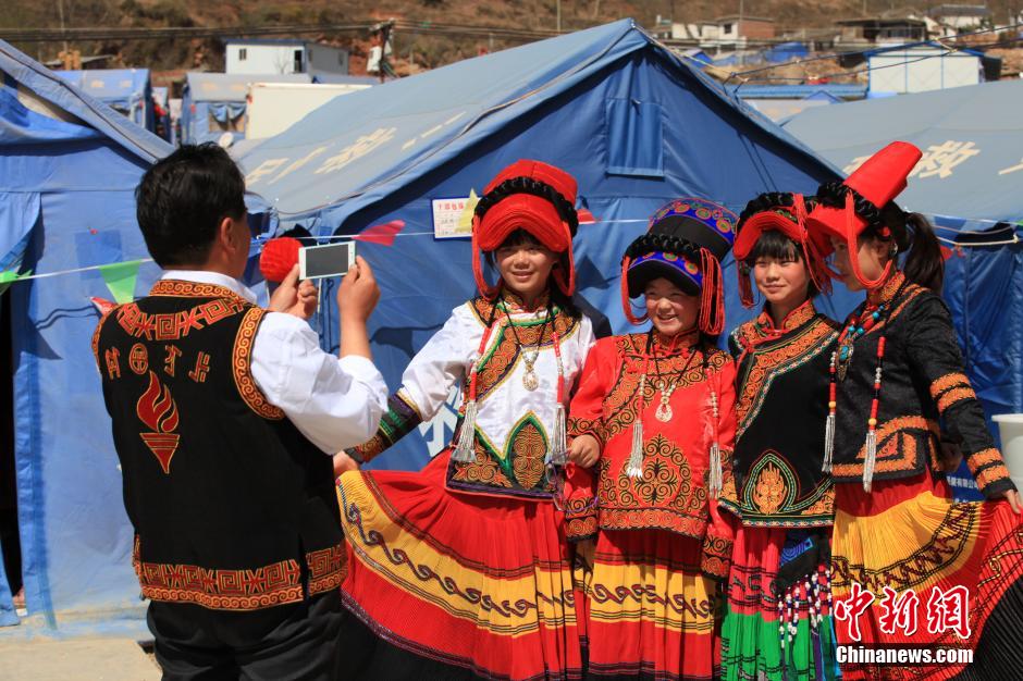 云南鲁甸地震灾区群众欢庆新年