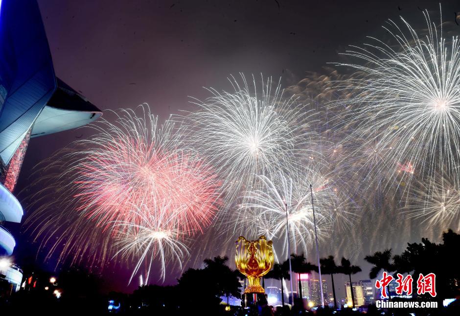 2月20日,农历羊年大年初二,香港维多利亚港举行盛大的新春烟花汇演活动,吸引数万市民及游客同赏璀璨烟花汇演,共庆羊年新春佳节。中新社发 张宇 摄