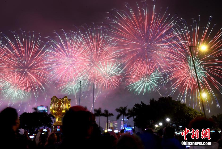 2月20日,农历羊年大年初二,香港维多利亚港举行盛大的新春烟花汇演活动,吸引数万市民及游客同赏璀璨烟花汇演,共庆羊年新春佳节。中新社发 张宇 摄