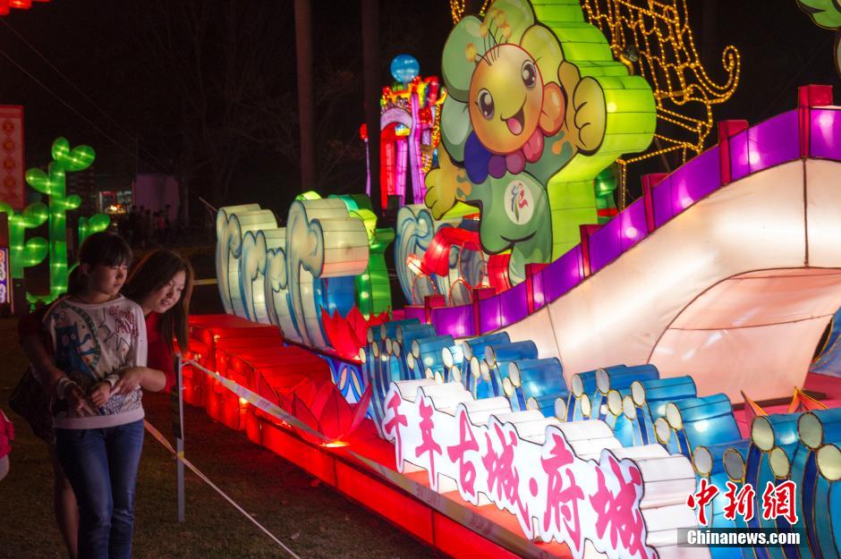 2月20日,正值大年初二,第10届海口万春会灯展正在海口万绿园火热举行,一排排大红灯笼将公园绿道装点得十分喜庆,花灯、树灯点缀两旁熠熠生辉,引众多市民、游客竞相邀约、纷沓而来。中新社发 骆云飞 摄