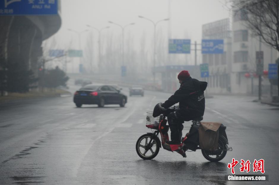 2月20日(大年初二),北京市迎来羊年第一场瑞雪,并伴有小雨大雾,能见度约500米,机场高速公路车辆稀少交通顺畅,交管部门在高速公路电子显示屏上滚动发出安全驾驶提示。中新社发 陈文 摄
