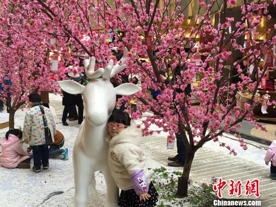 农历新年,网店快递大量歇业,各大线下商场纷纷推出各种形式的活动逆势而上迎“新春”。2月20日,在南京城南一家商场新设的“梅花园”内,众多萌娃在花间与小“羊”嬉戏合影,年轻人在树下许下新年祝福,祝愿新的一年阖家安康,喜气洋洋!
