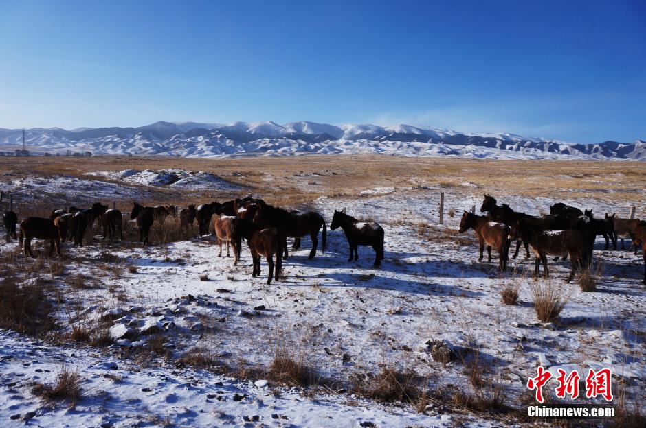 2月20日,农历正月初二,甘肃丝路名山焉支山现雪域骏马图美景引人醉。焉支山距山丹县城40公里,古名燕支山或胭脂山。隋大业5年(公元609年),隋炀帝西行,登此山召见西域27国使臣,在张掖举行“万国博览会”,甘州、凉州府派仕女歌舞队在路口朝迎,史书多有记载。唐代诗人李白在此留下“虽居焉支山,莫到溯雪寒”的绝句,也使焉支山名扬华夏。中新社发 杨艳敏 摄
