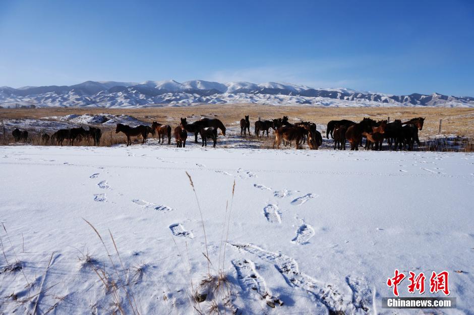 2月20日,农历正月初二,甘肃丝路名山焉支山现雪域骏马图美景引人醉。焉支山距山丹县城40公里,古名燕支山或胭脂山。隋大业5年(公元609年),隋炀帝西行,登此山召见西域27国使臣,在张掖举行“万国博览会”,甘州、凉州府派仕女歌舞队在路口朝迎,史书多有记载。唐代诗人李白在此留下“虽居焉支山,莫到溯雪寒”的绝句,也使焉支山名扬华夏。中新社发 杨艳敏 摄