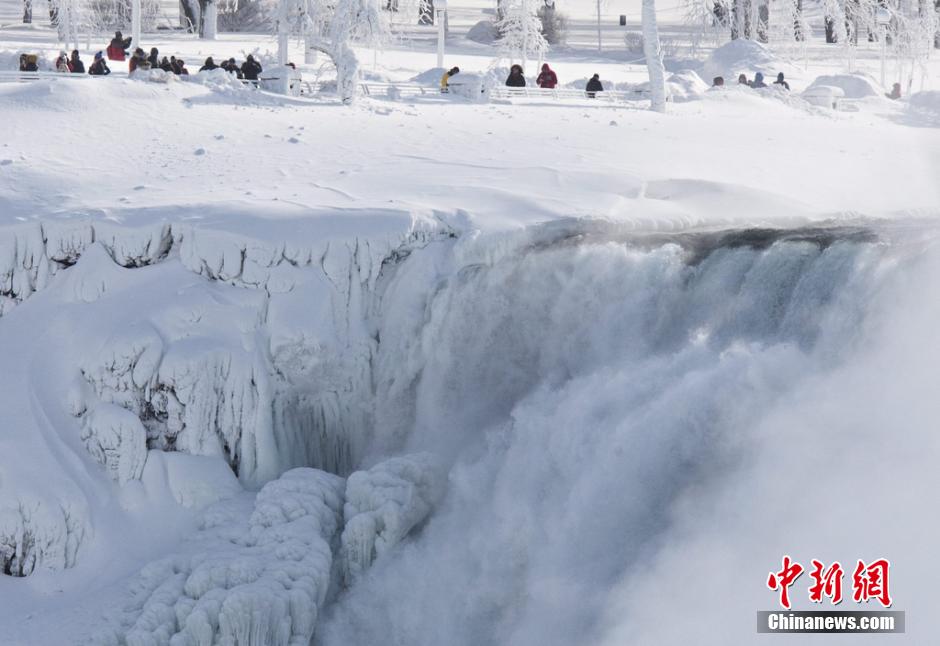 尼亚加拉瀑布遭冰封 场面壮观