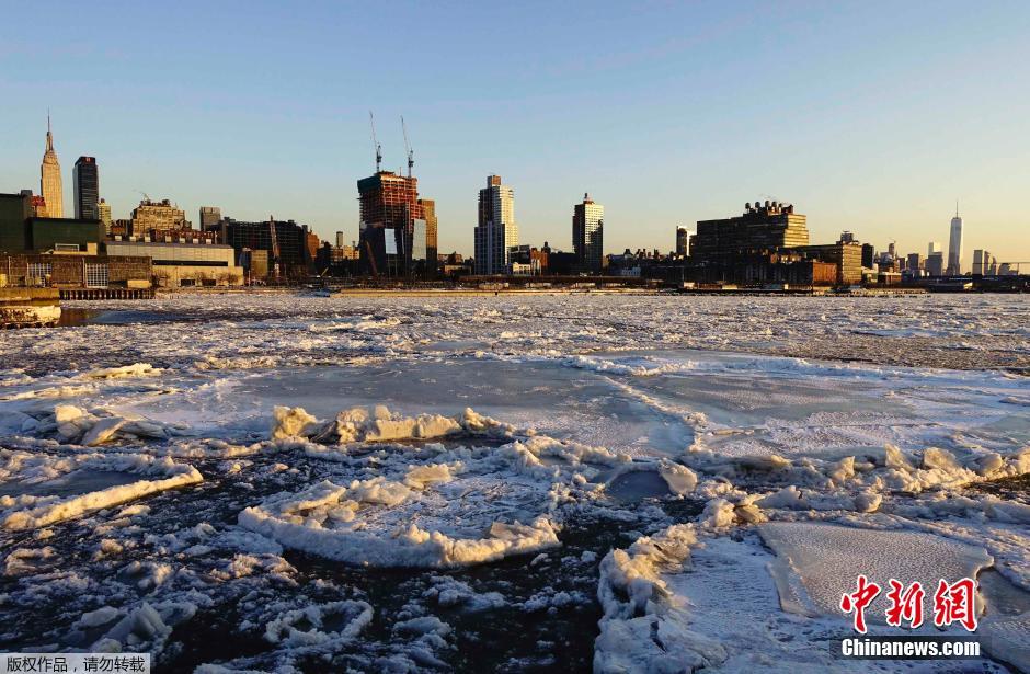 美国纽约遭遇极寒天气 哈德逊河现浮冰