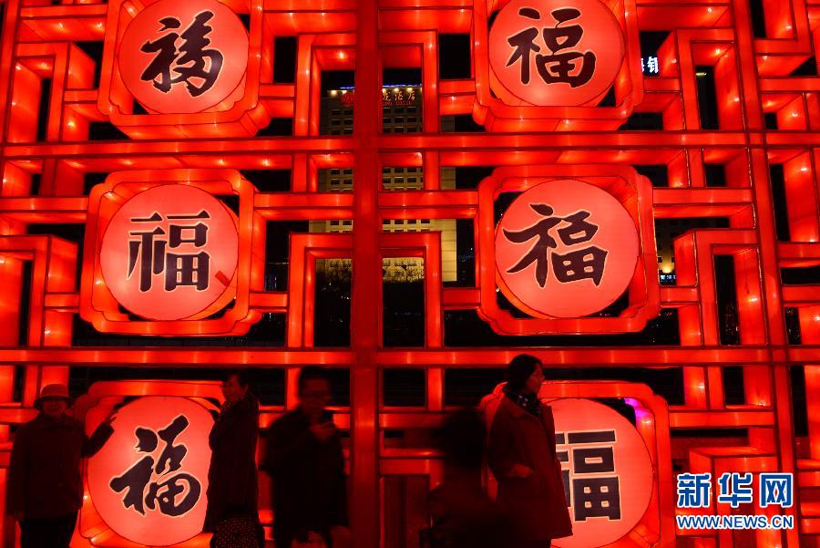 2月22日,市民们在观赏花灯。春节期间,青海省西宁市张灯结彩,璀璨夺目的花灯给高原古城带来浓郁的节日气氛。 新华社记者张宏祥摄