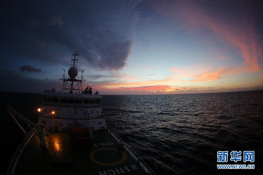 这是从“科学”号艏桅上看夕阳(2月13日摄) “西太平洋”是全球“海山”系统分布最为集中的海域,全球海洋生物多样性中心,也是对中国近海环境影响最大的海域。我国最先进的科考船“科学”号正在雅浦海沟、马里亚纳海沟与卡罗琳海岭“三连点”区域执行任务,2月23日是“科学”号此次离开青岛母港的第83天。船员与科考队员们与家人团聚之期要到正月十五前后。新华社记者 孟菁 摄