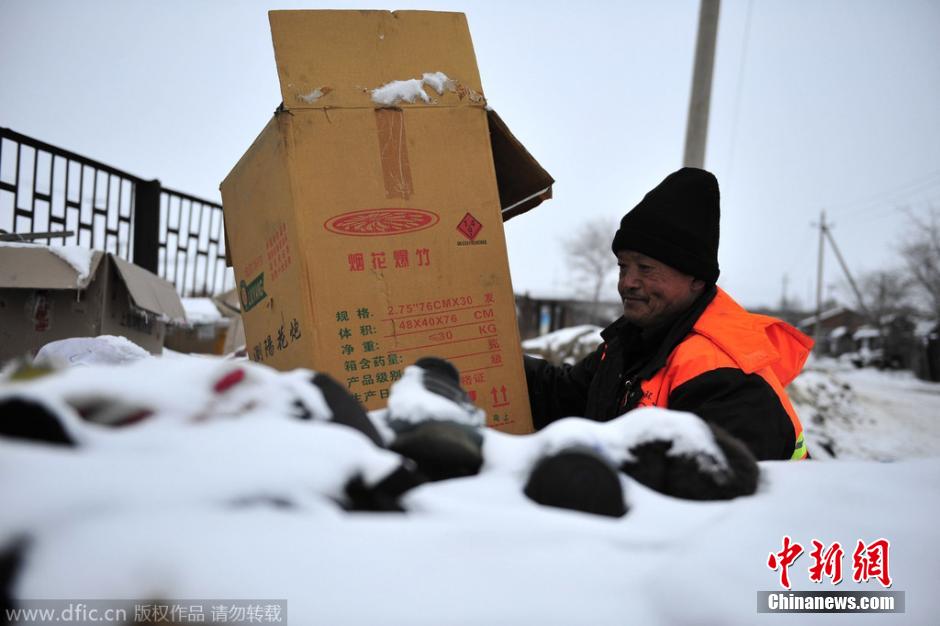 2015年2月22日,刘宝生在结束一天的工作后回到家中清理院落中的杂物。王伟 摄