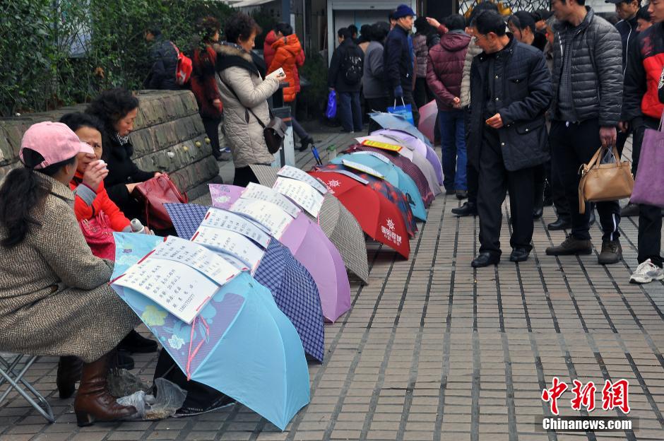 上海公园“相亲角” 家长“撑伞招亲”