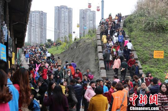 图为重庆洋人街景区游客人头攒动。 杨孝勇 摄