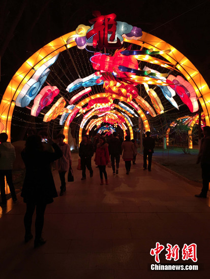 24日,自贡彩灯艺术展正在青海省西宁市人民公园火热举行,一排排彩灯将公园绿道装点得十分喜庆,花灯、树灯点缀两旁熠熠生辉,引众多市民、游客竞相邀约、纷沓而来。 赵凛松 摄