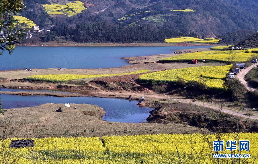 2月24日拍摄的罗平湖光花色。春节长假期间,云南省罗平县80余万亩油菜花竞相绽放,吸引了来此度假的数十万旅游者徜徉花海,观赏油菜花盛开的壮丽景象。新华社记者陈海宁摄