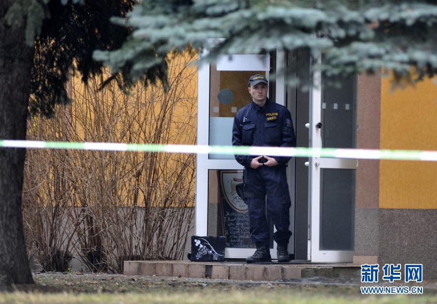 2月24日,在捷克东部小镇乌赫尔斯基布罗德,一名警察在枪击案现场警戒。据捷克媒体报道,距捷克首都布拉格东部300公里的小镇乌赫尔斯基布罗德的一家餐馆24日发生枪击事件,造成包括枪手在内9人死亡,另有数人受伤。新华社/美联