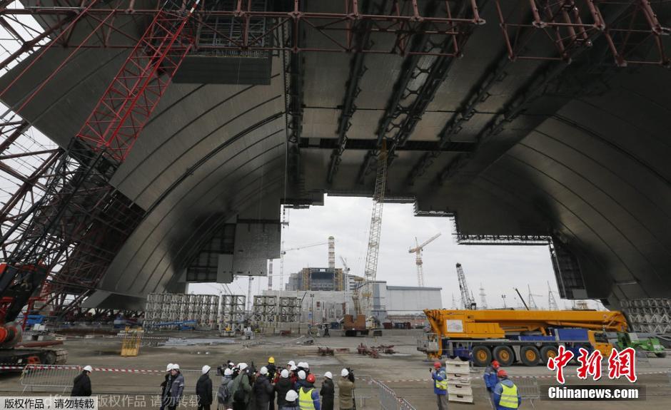 当地时间2015年2月25日,乌克兰,将覆盖在切尔诺贝利核电站遗址上的石棺正在施工。