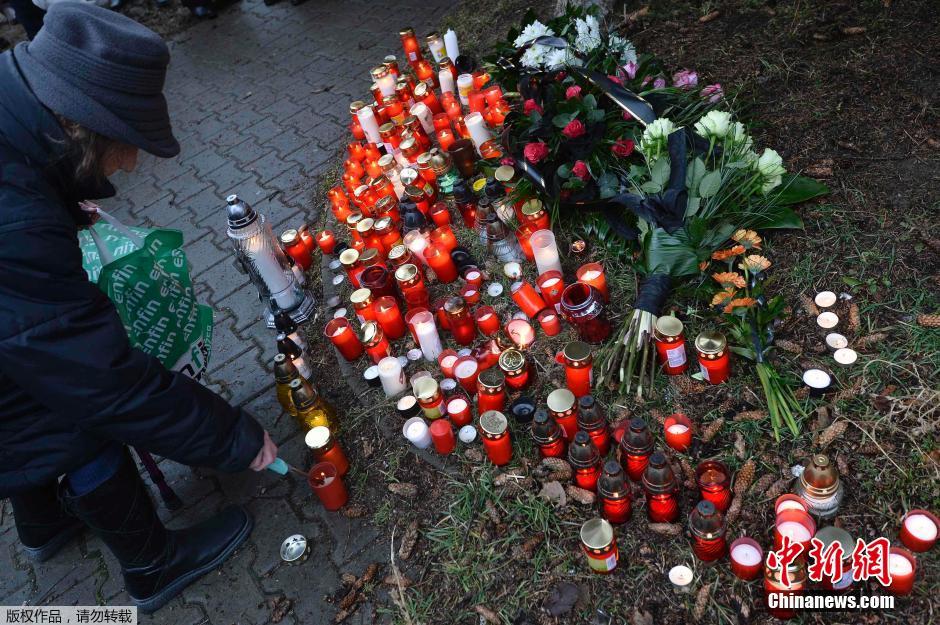 当地时间2015年2月25日,捷克东部小镇Uhersky Brod,民众悼念枪击案遇难者。当地一家餐馆24日发生枪击事件,造成包括枪手在内9人死亡,另有数人受伤。