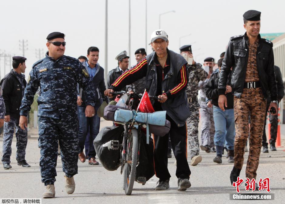 中国男子骑车环游世界18年 获伊拉克军警护送