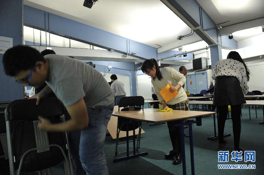 2月25日,在比利时布鲁塞尔自由大学举行的“布鲁塞尔春节联欢晚会”结束后,中国留学生们清理“临时餐厅”。新华社记者叶平凡摄