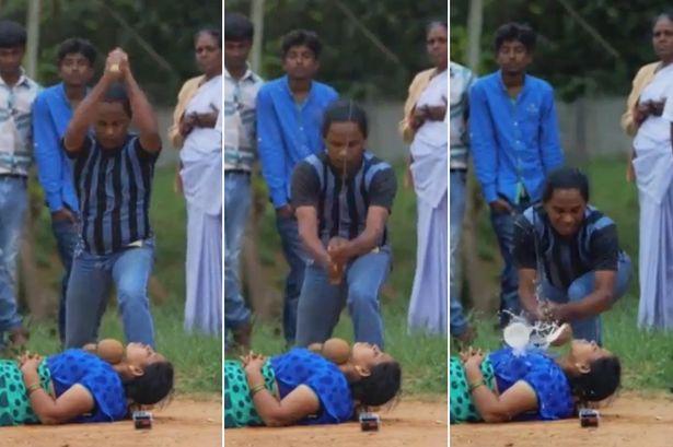 据英国《镜报》2月16日消息,近日,网络上一段印度男子挥刀砍碎妻子脖子处椰子的视频引起人们广泛关注。