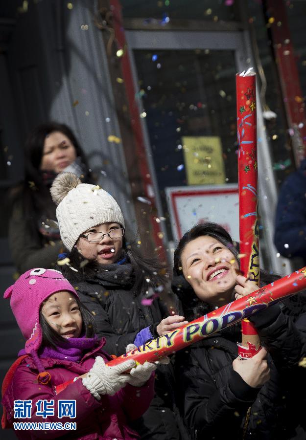 2月19日,在美国纽约唐人街,人们参加庆祝春节的活动。在2015年春节期间,世界各地举行活动庆祝羊年的到来,海外华侨华人和其他当地民众一起欢度节日,许多外国政要也参与春节活动。招人喜爱的羊型装饰、闪耀夜空的烟火灯饰、传统的舞龙舞狮和红灯笼……喜气洋洋的年味不知不觉洋溢全球。随着中国文化影响力提高,春节已逐渐成为世界性节日文化活动。新华社/路透
