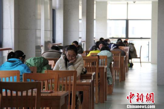江苏盐城市民图书馆里阅读度新春