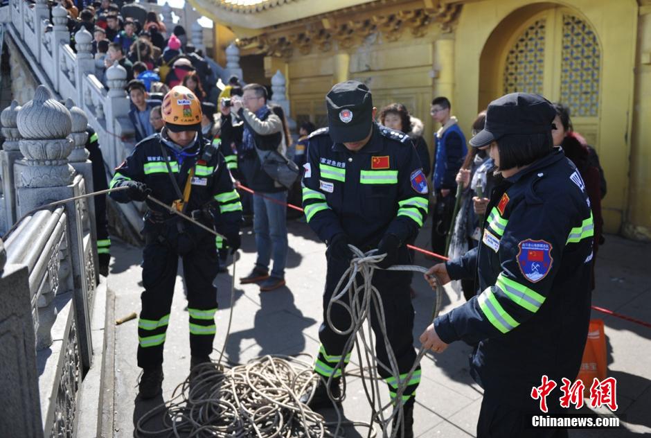 2月22至23日,四川山地应急救援队的“蜘蛛侠”们来到峨眉山金顶,深入舍身崖下200多米处捡拾游客丢弃的塑料瓶和塑料袋等白色垃圾,通过捡拾行动提醒广大游客不要随便乱扔垃圾,爱护和保护景区环境,做文明游客。图为“蜘蛛侠"们准备攀崖绳下崖捡拾游客丢弃的垃圾。刘忠俊 摄