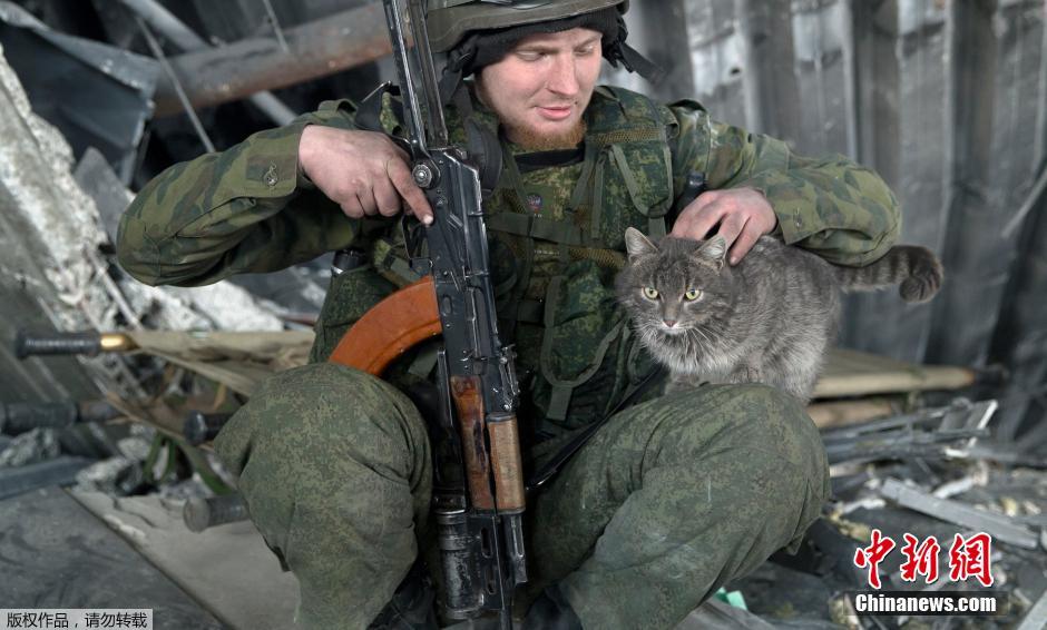 当地时间2015年2月25日,顿涅茨克,乌克兰战俘在亲俄民间武装控制的机场大楼废墟里搜寻和挖掘同伴的遗体,这些乌克兰士兵在上月与亲俄民间武装争夺机场控制权的战斗中丧生。