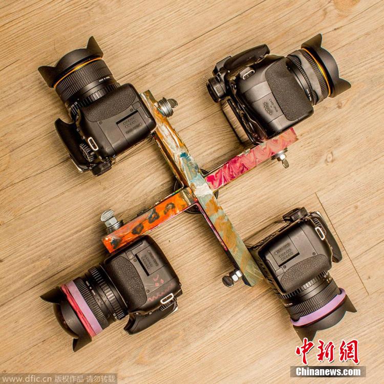 2015年2月25日报道(具体拍摄日期不详),位于怀俄明州的魔鬼塔国家纪念区(Devils Tower National Monument)。摄影师Vincent Bradys为模仿著名画家梵高的名作《星夜》,他走遍了全美,拍摄了一组主打漩涡状的星迹和强烈色彩对比的“星空全景图”。他的拍摄技法十分酷炫,通过将四台装配有鱼眼镜头的相机固定在一个十字架上,再运用长曝光来捕捉夜空中恒星视运动的星迹。