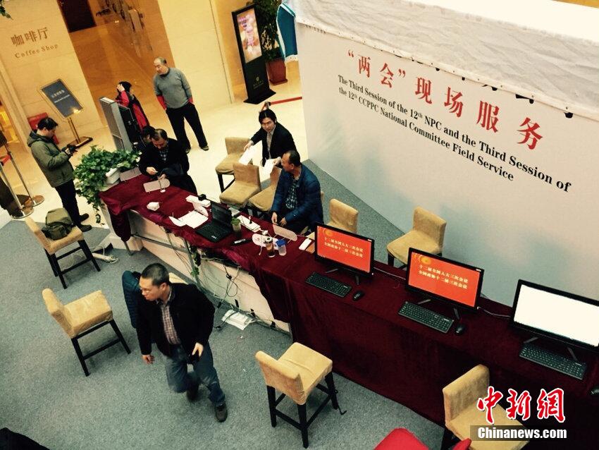2015年2月25日,北京梅地亚中心两会新闻中心进入设备安装调试阶段。 图片来源:CFP视觉中国