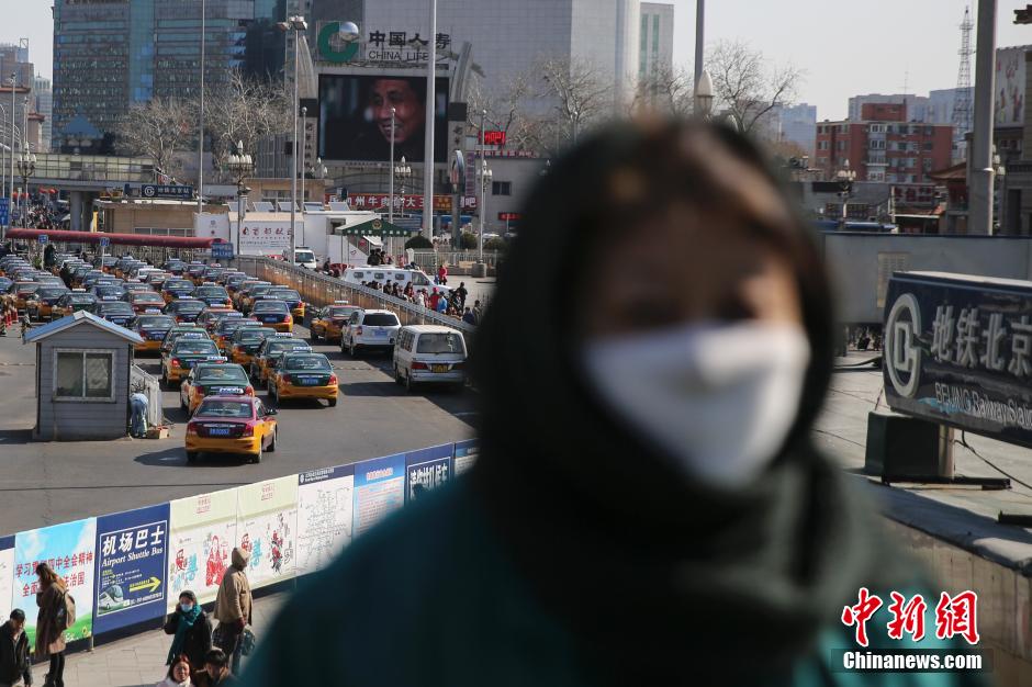 2月26日,旅客在北京火车站外的地铁口排队等待。春节过后,北京站持续迎来大批返程客流。 中新社发 熊然 摄