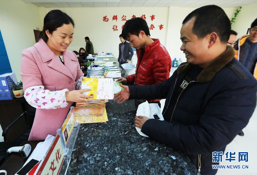 2月25日,在重庆市北碚区蔡家岗镇两江名居公租房北社区的办事大厅,办事人员王旺旺(左)在为社区居民罗庆丰办理图书借阅手续。当日是春节假期结束后的第一个工作日,人们纷纷返回岗位,投入到工作之中。 新华社发(秦廷富 摄)