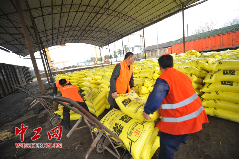 南昌车务段抚州北站的职工抢运春耕物资化肥