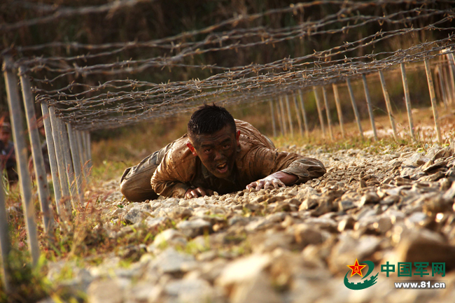 通过铁丝网。刘俊驿、王文锥、殷一首 摄