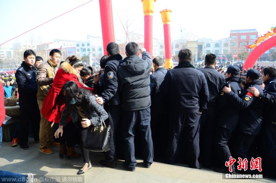 2015年2月26日,山东滨州,博兴县举办春节后首场大型现场招聘会,吸引了当地2万余名应聘者前来求职,现场人头攒动,场面火爆。为防止踩踏事故发生,当地出动20余名特警维护秩序,保护应聘者安全。 据了解,该县每年春节后举行“春风行动”招聘会,旨在解决企业节后用工荒、缓解当地就业压力,留住春节返乡人才。韦鹏 摄