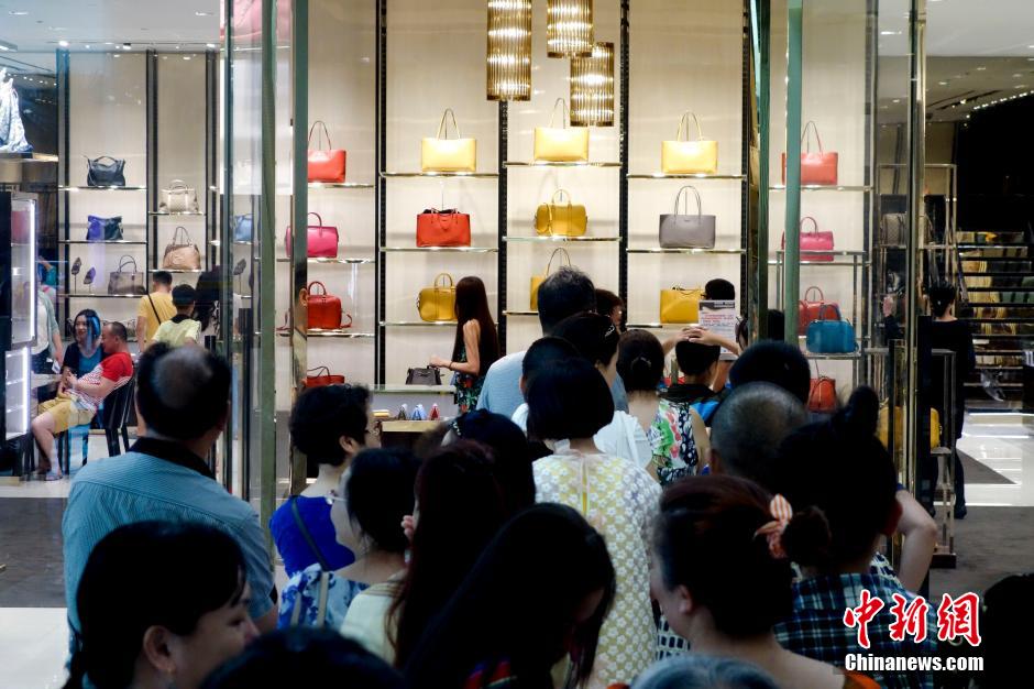 2月26日,三亚春节度假游火热,位于三亚市郊的全球最大单体免税店海棠湾国际购物中心内依然人头攒动,为保障服务质量,不少品牌商店采取限流措施,游客在商店门口排起了长队。因海南实施离岛免税政策,到免税店购物正成为越来越多来琼游客的选择。据海南省商务厅消息,2015年春节期间海南离岛免税销售额近3亿元。中新社发 杜洋 摄