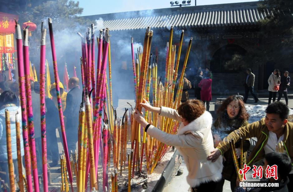 2月26日,山西大同纯阳宫,众多民众烧高香祈福。中新社发 武俊杰 摄